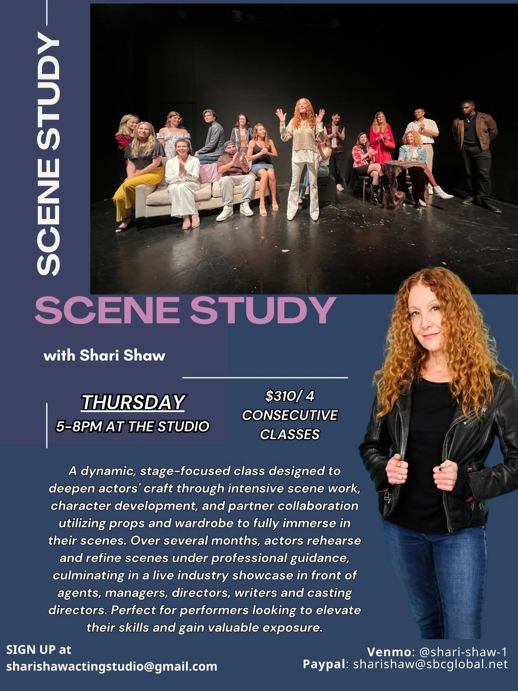Great for the actor looking to sharpen their scene study skills AND who are looking for reps!