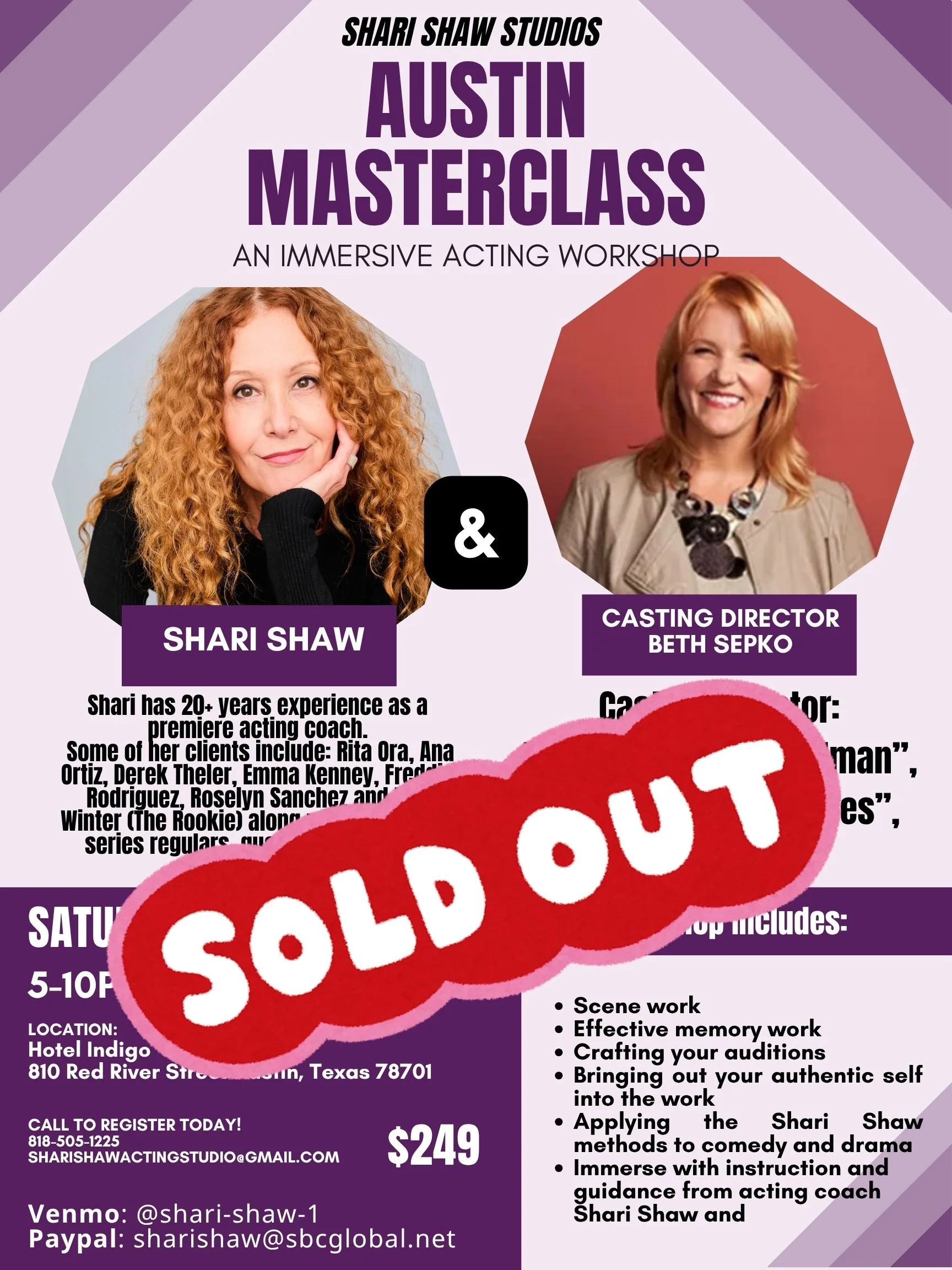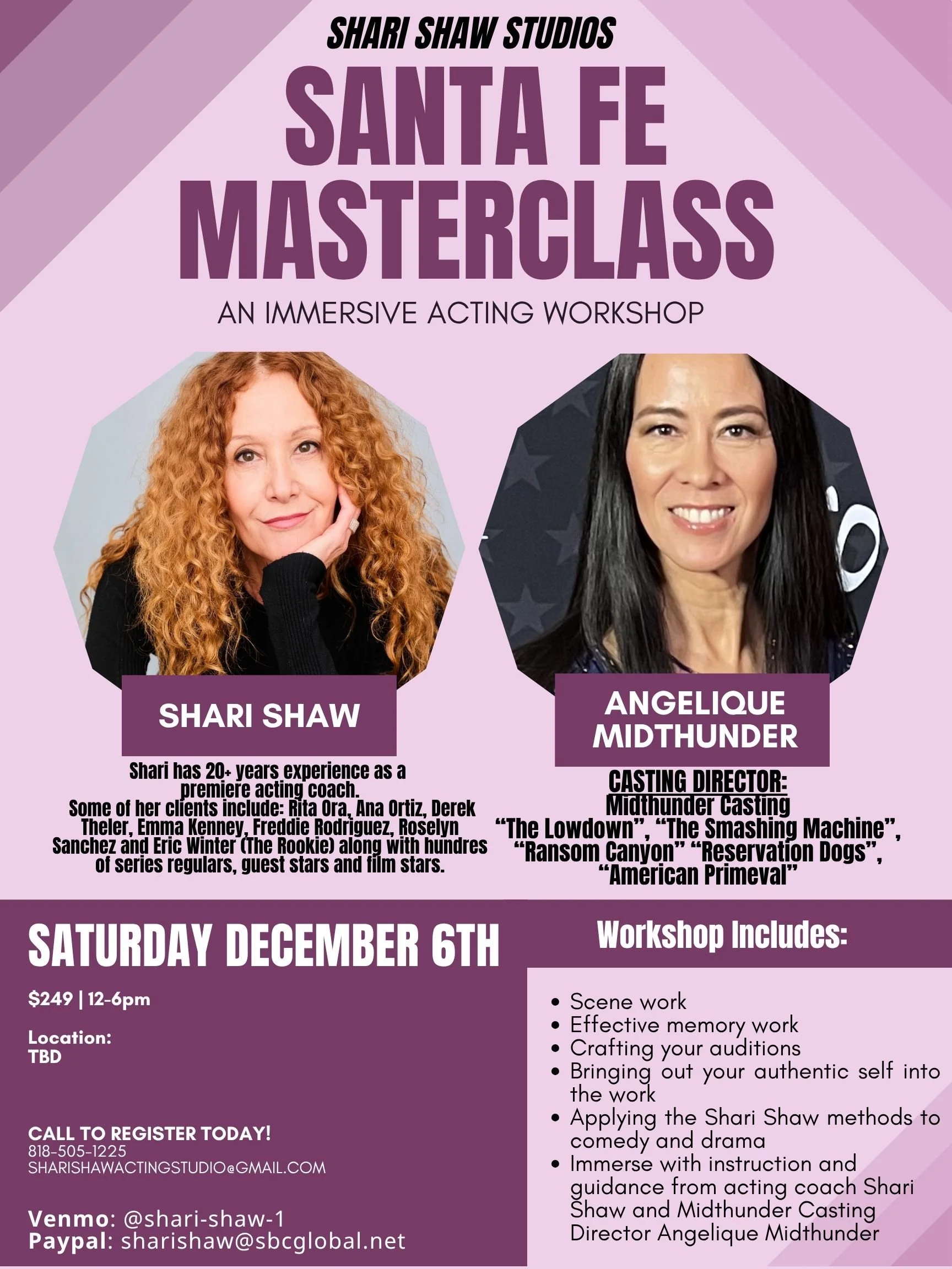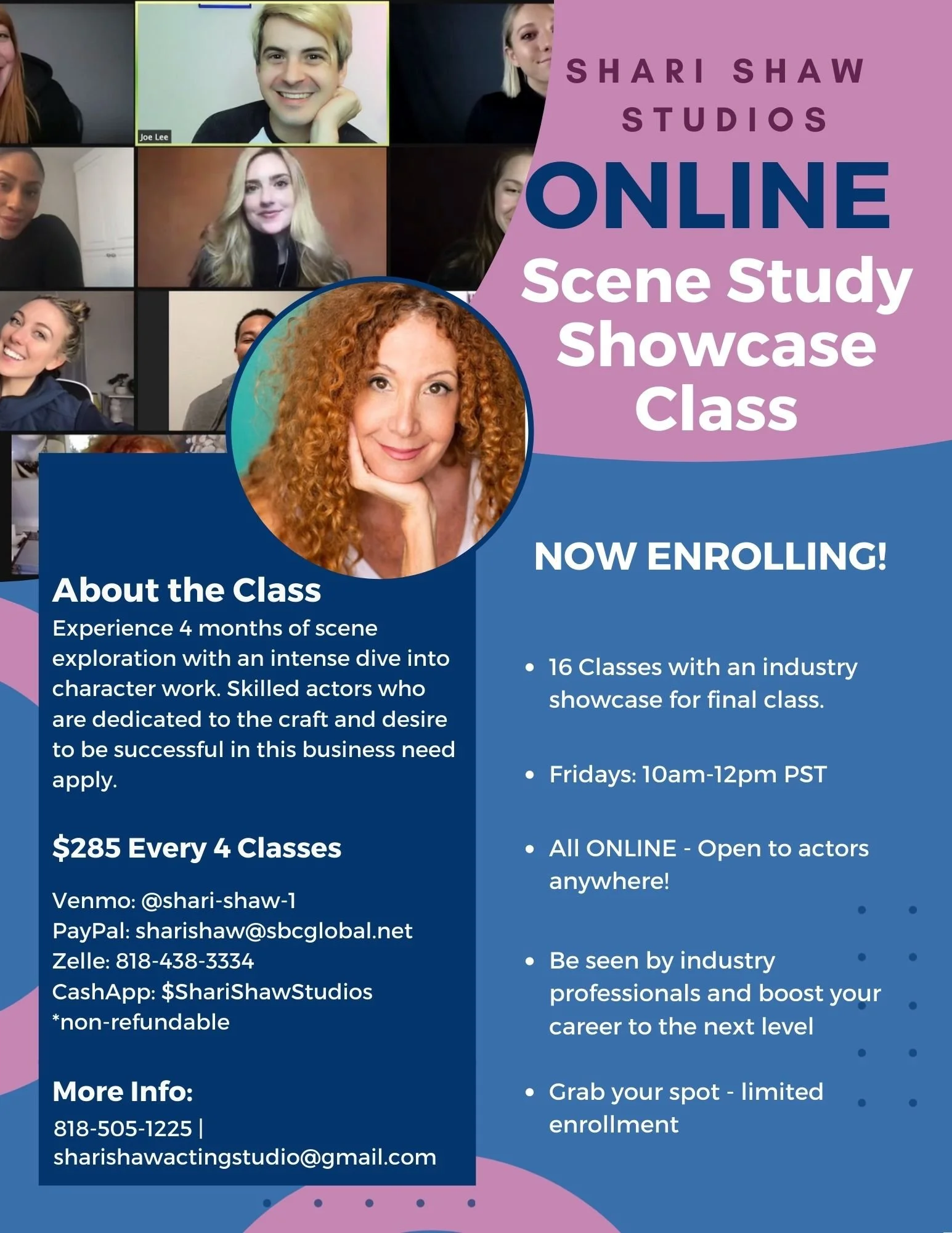For a 30 minute consultation, email the studio at sharishawactingstudio@gmail.com